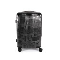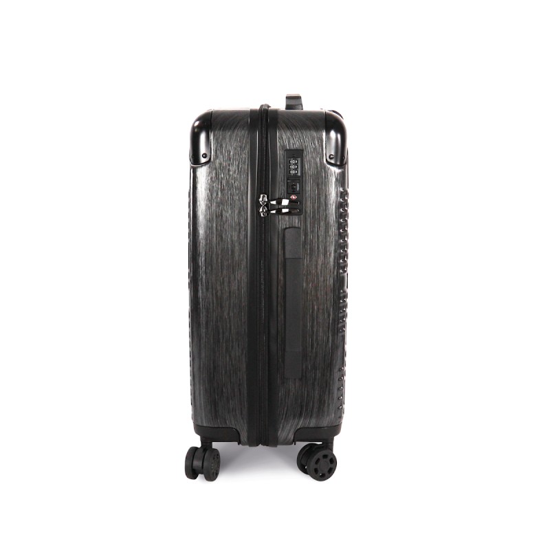 100 % polycarbonate. Trolley taille cabine. Au design géométrique "Geoline", ce trolley en aluminium est doté de 4 roues multidirectionnelles et de pieds de protection latéraux pour poser la valise sur le côté. Les angles sont réalisés en matériaux en caoutchouc pour une meilleure protection. Pour plus de confort il comporte : 1 poignée supérieure extensible, 1 poignée sur le côté, 1 sangle rétractable sur le devant pour accrocher et transporter 1 sacoche porte-document, 2 compartiments internes dont 1 avec 1 sangle de maintien et 1 autre avec 1 fermeture glissière et poches pour accessoires. Pour votre sécurité, ce trolley est équipé d'une fermeture par TSA par combinaison.