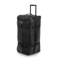 100% polyester / 100% PVC. Sac trolley grand format en chlorure de polyvinyle et polyester. Il est entièrement conçu en matériaux imperméables avec une fermeture glissière étanche. Pratique, il est composé d'1 poche range-chaussures sur le côté, d'1 poche frontale zippée, d'1 grande poche interne en filet pour accessoires avec fermeture zippée. Pour faciliter le transport, il est équipé de 2 sangles de compression, de poignées sur les 2 côtés. Robuste, ce sac a été pensé avec des renforts de protection sur les angles, 1 barre de protection sur le dos du trolley, 1 fond semi-rigide avec 1 poignée en plastique qui fait office de pied.