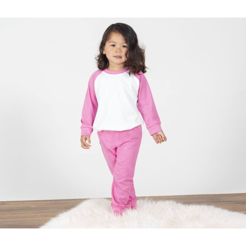 Ensemble pyjama. Tee-shirt baseball : manches et encolure contrastées. Pantalon contrasté : taille élastiquée.