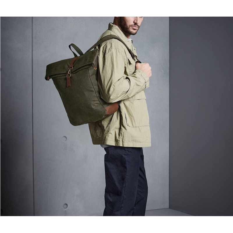 100 % toile de coton ciré | Étiquette détachable pour faciliter le remarquage | Détails en cuir véritable | Compartiment principal à fermeture éclair | Fermeture clip sécurisée | Détails effet laiton antique | Complètement doublé | Poche intérieure | Convient à des ordinateurs portables jusqu'à 15,6 po | Poignée en tissu | Partie arrière rembourrée | Bretelles réglables rembourrées | Fermeture éclair invisible pour accès boderie facile | Livraison sans contenu/décoration | Capacité : 9 litres