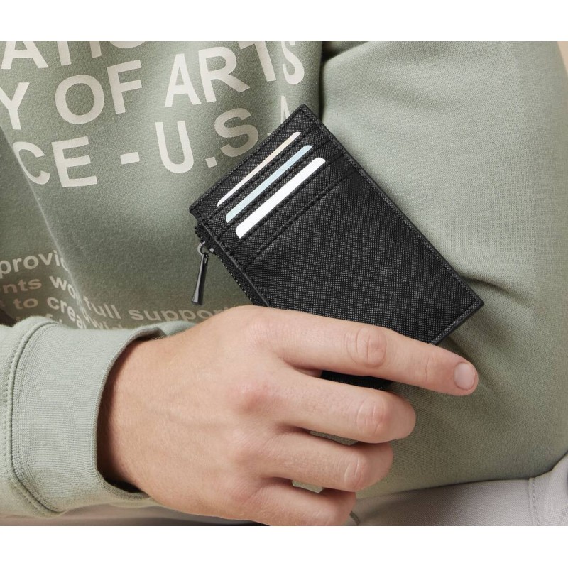 100% similicuir PU | Étiquette détachable | Cuir saffiano au grain fin | Desugb comtemporain | Décoration possible à l'avant et à l'arrière | Place pour 4 cartes de crédit | Doublure au toucher doux | Livraison sans contenu/décoration