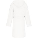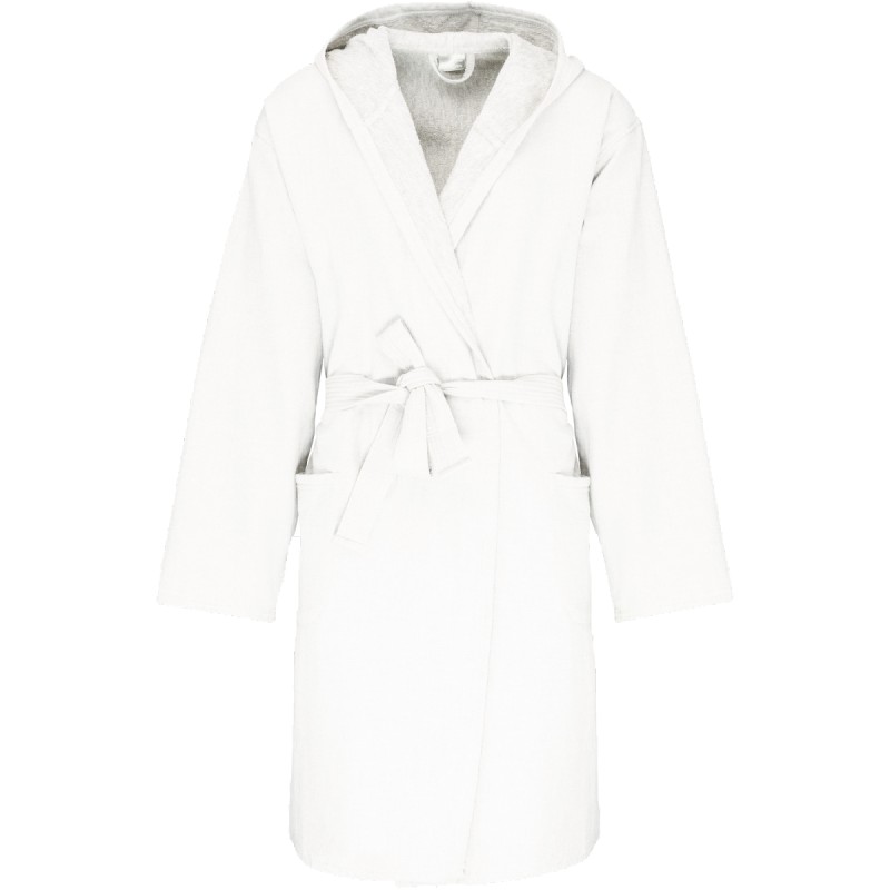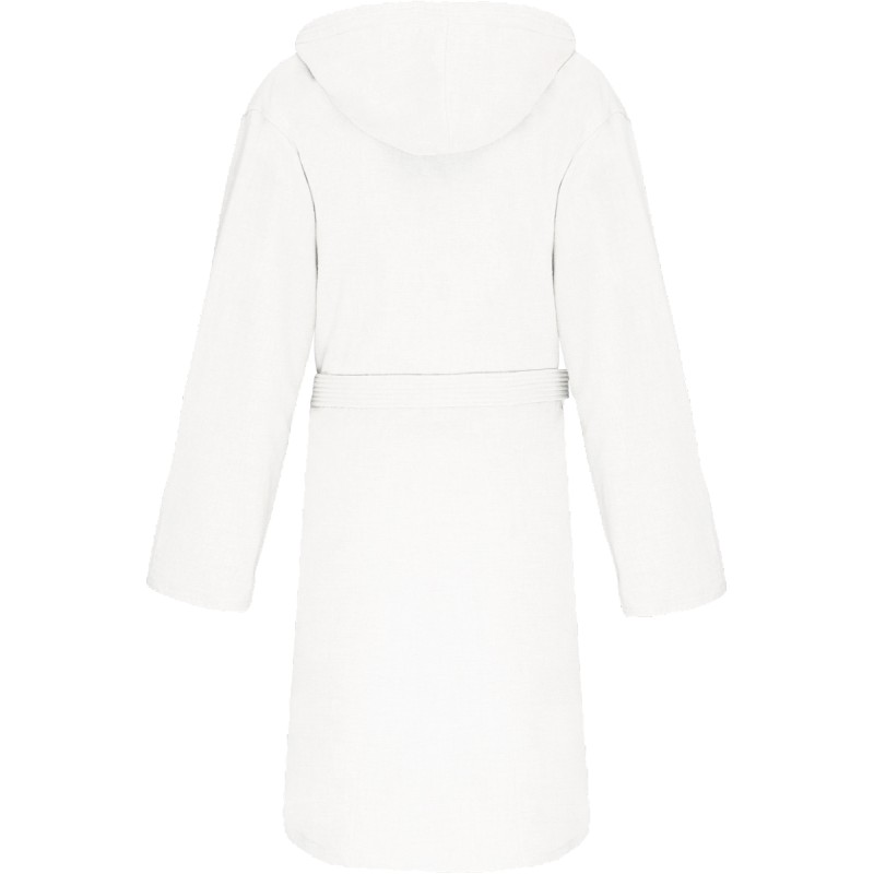 100% coton biologique. Maille Terry. Toucher agréable et doux. Grande capuche. 2 poches côté plaquées avec surpiqûre de renfort en haut de poches. Ceinture avec passants. Lien d’accrochage dans le col. Finition double aiguille bord capuche, bas de manches et de vêtement. Finition tubulaire à l'ourlet bas et bas de manche.