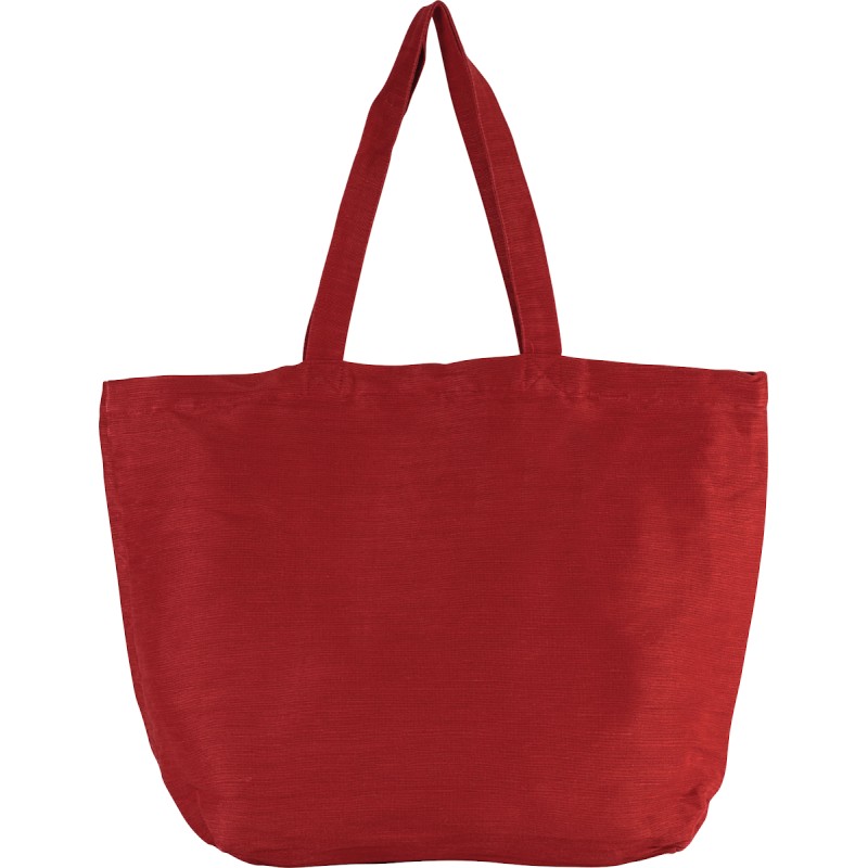 Grand sac fourre-tout en toile de jute et coton (juco). Doublure en coton, poche intérieure zippée, soufflet, anses de 65 cm dans la même matière et couleur. Fermeture avec bouton pression aimanté.