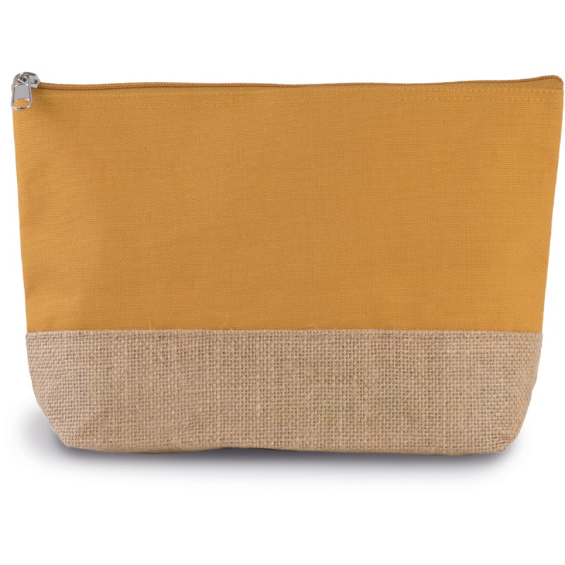 Pochette en toile de coton avec base contrastée en jute naturelle laminée.