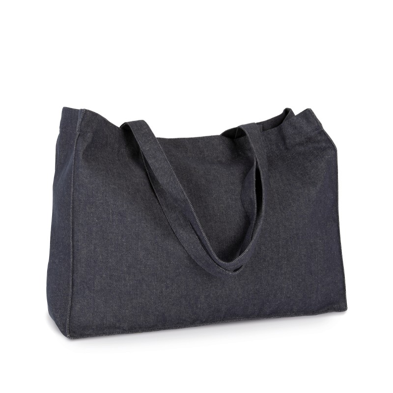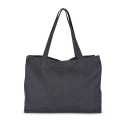 70% coton recyclé / 30% polyester recyclé. Les anses sont réalisées dans la même matière que le corps du sac. Étant recyclée, cette matière ne perd pas sa couleur.