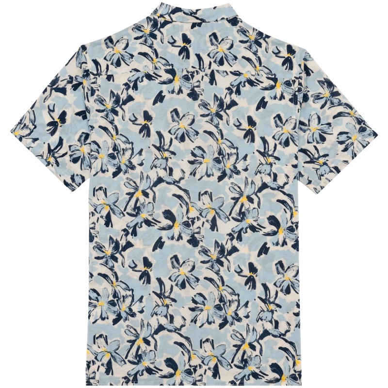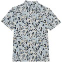 62% lin / 38% coton biologique.  Tissé.  Coupe ajustée.  Coutures latérales.  Col chemise avec pied de col.  Patte de boutonnage rapportée avec boutons contrastés.  Empiècement dos doublé.  Tissage aux motifs imprimés continus.  Epaule et dessous de manches avec double surpiqûre.  Ourlet double aiguilles bas de manches et de vêtement.  Vêtement lavé après montage : les couleurs peuvent varier d'un produit à l'autre.