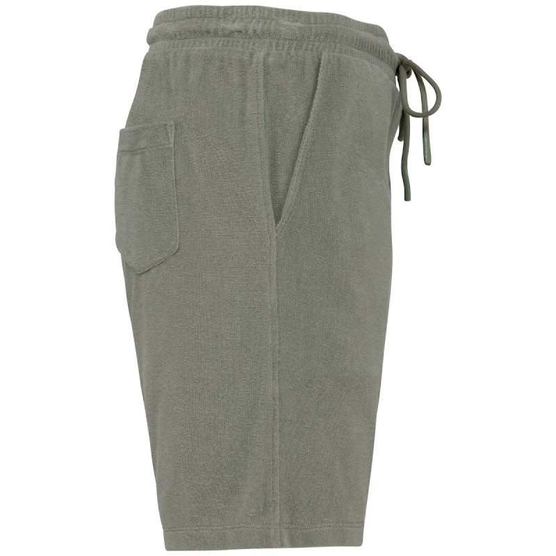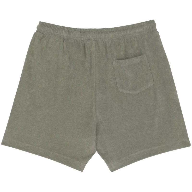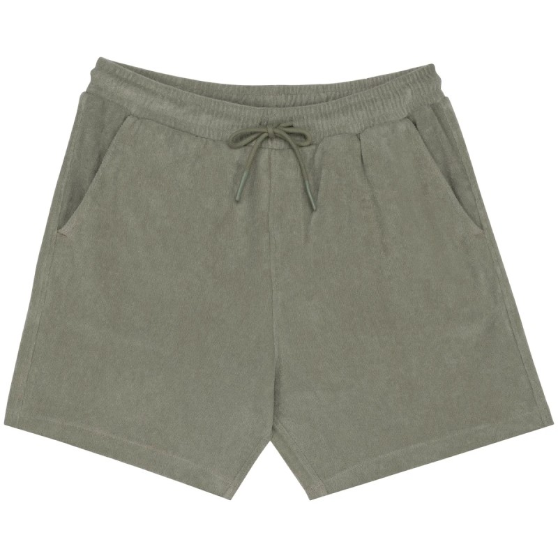 80% coton biologique / 20% polyester recyclé post-consumer.  Fabriqué au Portugal. Coton peigné. Matière éponge. Lavé aux enzymes. Taille élastiquée avec cordons de serrage. Fausse braguette fantaisie. Poche plaquée dos.