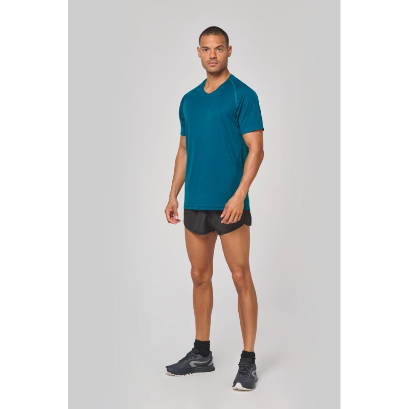 100% polyester recyclé. Tissu léger à séchage rapide. Coupe droite. Encolure ronde avec bande de propreté contrastée. Manches raglan avec surpiqûres ton sur ton. Finitions double aiguilles à l'encolure, bas de manches et de vêtement. Finition tubulaire à l'ourlet bas et bas de manche. Etiquette de marque tearaway pour faciliter la personnalisation. Certifié STANDARD 100 by OEKO-TEX®N° CQ1007/7, IFTH.