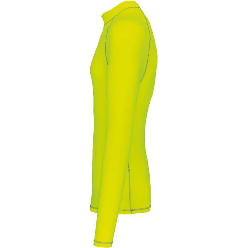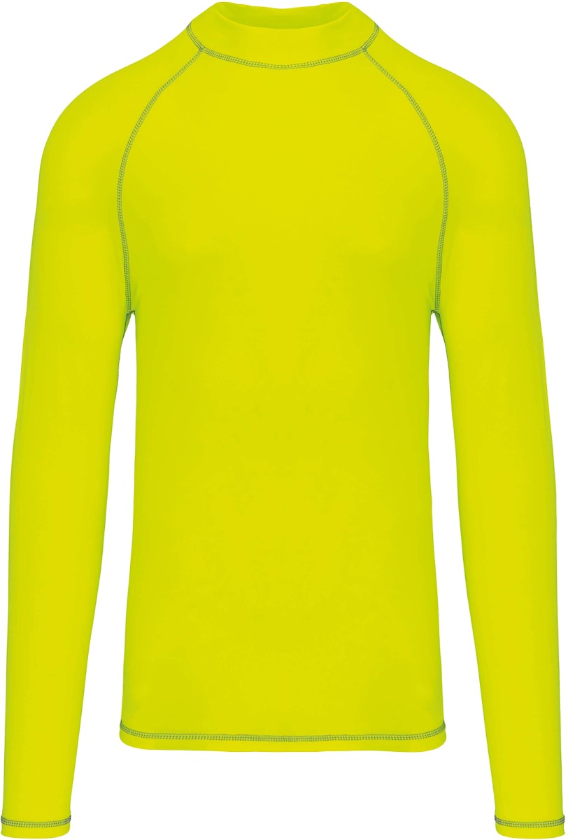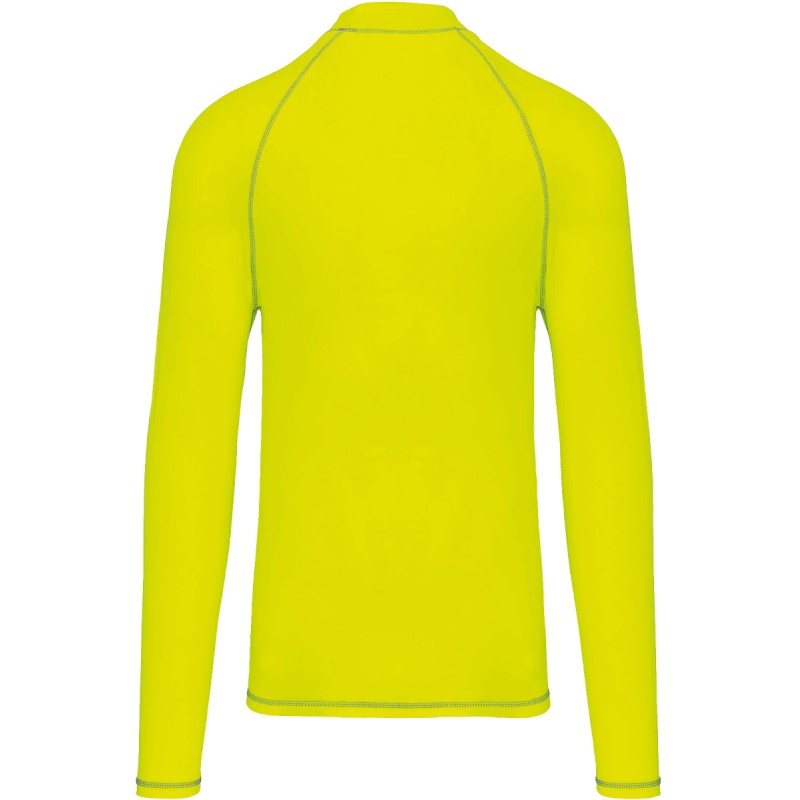 88% polyester recyclé  / 12% élasthanne. Maille extensible. Coupe skinny. Protection UV50+ correspondant à la norme EN13758-1&2. Manches longues raglan avec surpiqûres contrastées. Col montant. Boucle élastique insérée dans l'ourlet devant permettant de passer le cordon du short afin de stabiliser le t-shirt. Finition double aiguilles aux manches et bas de vêtement. Etiquette de marque déchirable pour faciliter la personnalisation.