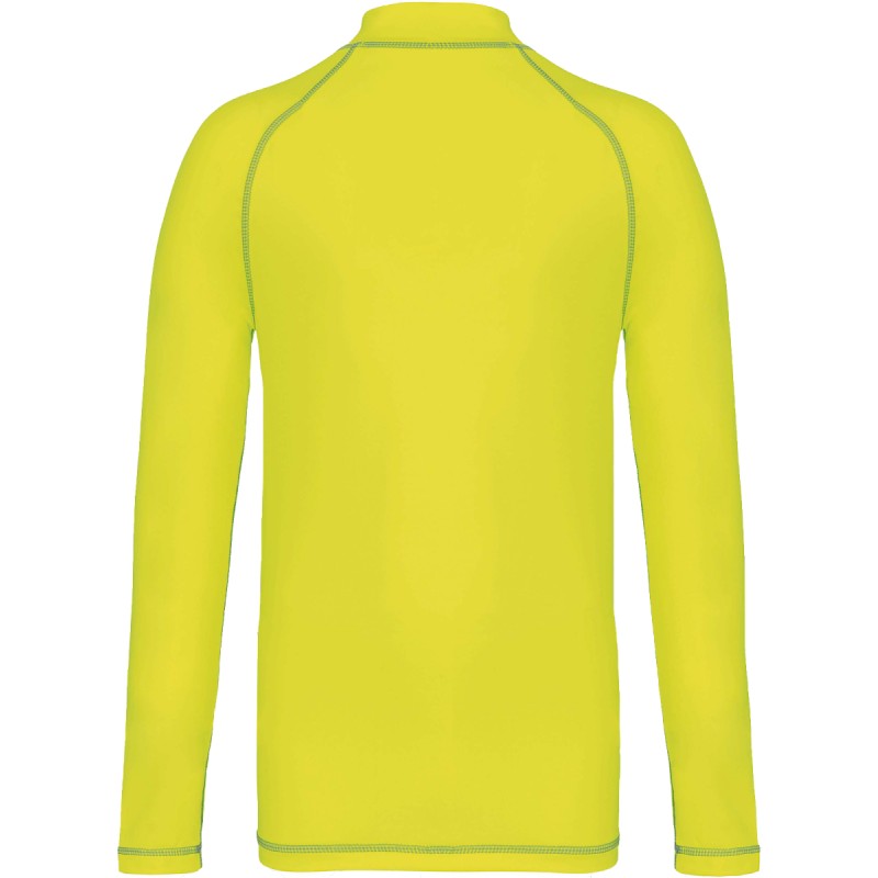88% polyester recyclé / 12% élasthanne. Maille extensible. Coupe skinny. Protection UV50+ correspondant à la norme EN13758-1&2. Manches longues raglan avec surpiqûres contrastées. Col montant. Boucle élastique insérée dans l'ourlet devant permettant de passer le cordon du short afin de stabiliser le t-shirt. Finition double aiguilles aux manches et bas de vêtement. Etiquette de marque déchirable pour faciliter la personnalisation.