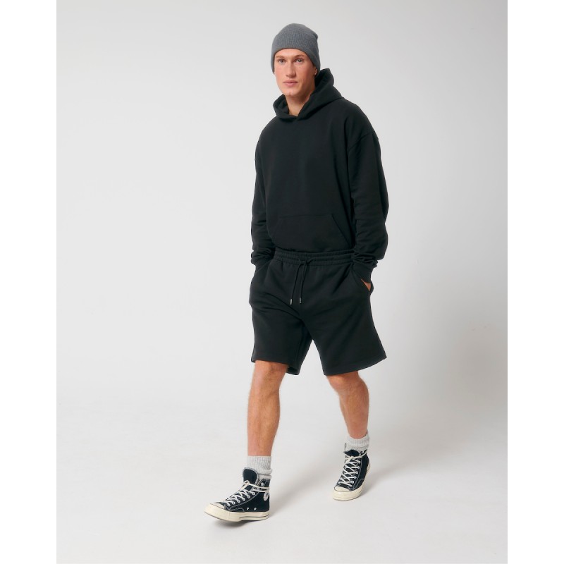 Élastique dans la matière principale à la tailleCordon de serrage rond ton sur ton avec embout en métalŒillets brodésFond de poches en jersey simplePoche plaquée au dosSurpiqûre simple sur la taille, les poches et la fourcheSurpiqûre double large au bas du corps sur la couture intérieure