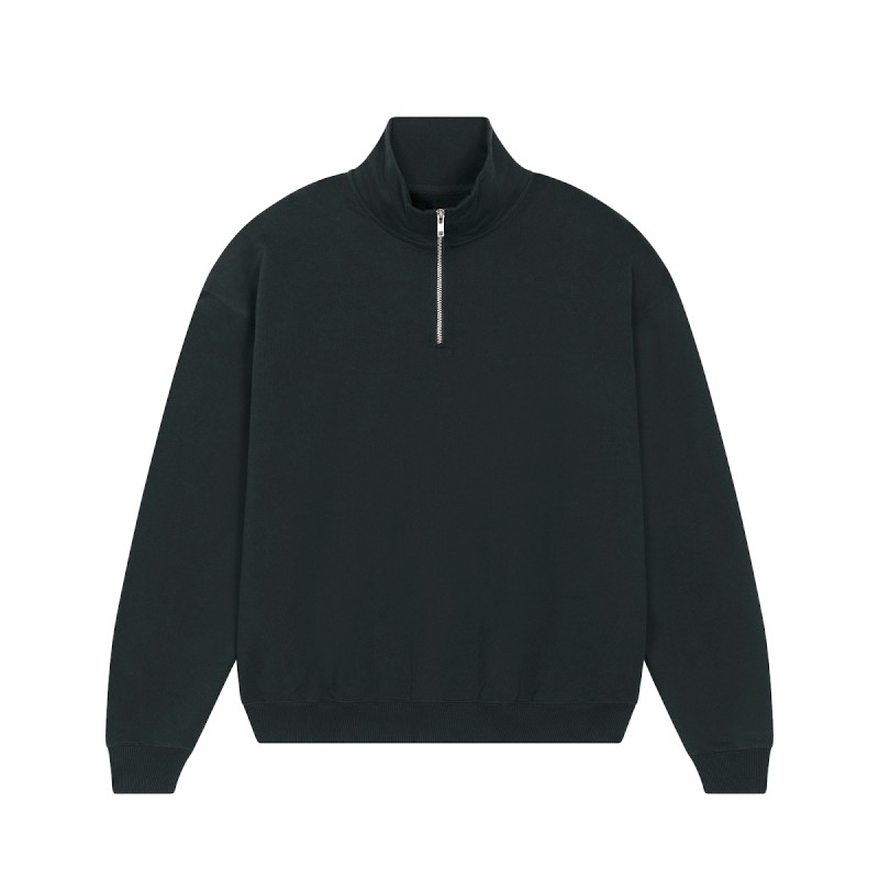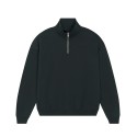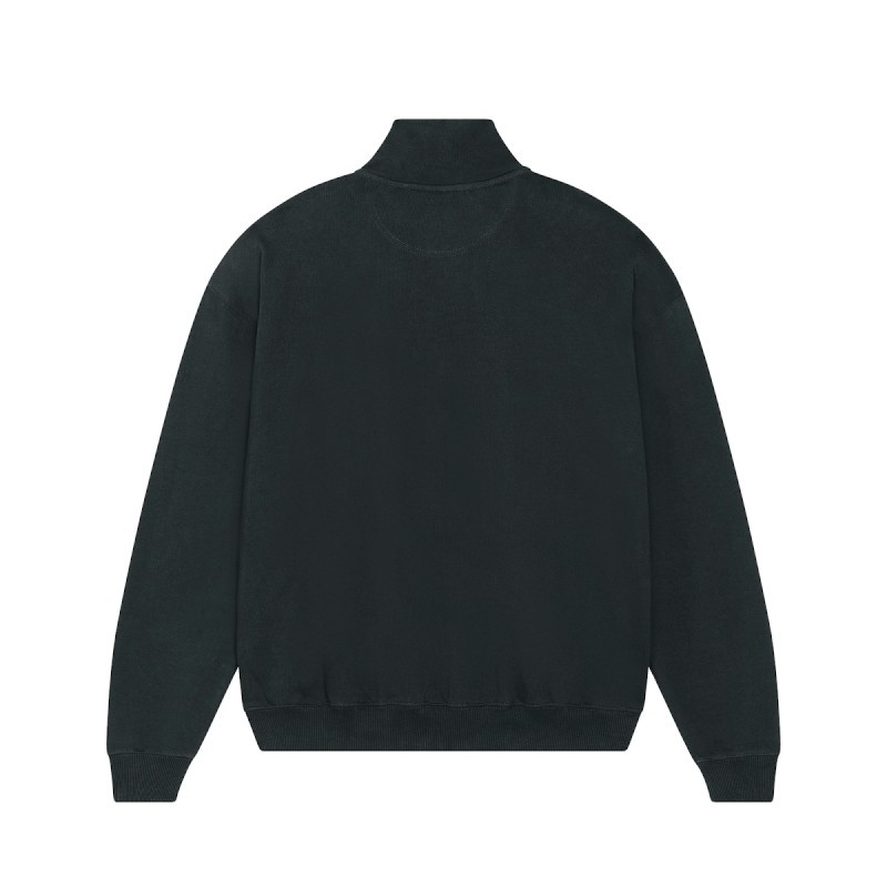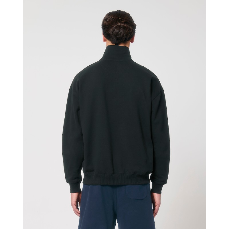 Manches montéesCol dans la matière principaleRuban à chevrons à l’intérieur du col et à l’intérieur de la fermeture éclairFermeture éclair sur un quart centrée à l’avantBord en côtes 2x1 au bas des manches et bas du corpsSurpiqûre double aux emmanchures, bas des manches et bas du corps