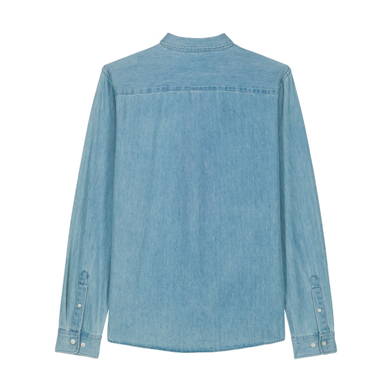Col boutonné avec surpiqûres à aiguille simplePied de colPatte de boutonnage avant avec surpiqûres à aiguille simple de chaque côtéÉpaule avancéeEmpiècement dosEmpiècement intérieur dans le même tissuManches montéesPatte de manche avec un boutonPoignet avec deux boutonsCoins des poignets arrondisPlis doubles à la couture du poignetEffet délavé sur toutes les coutures dû au lavage du vêtementProduit teint avec fil indigo, chaque vêtement peut varier en apparence, la couleur peut déteindre, suivez notre étiquette de soinLisez attentivement les recommandations d'impression
