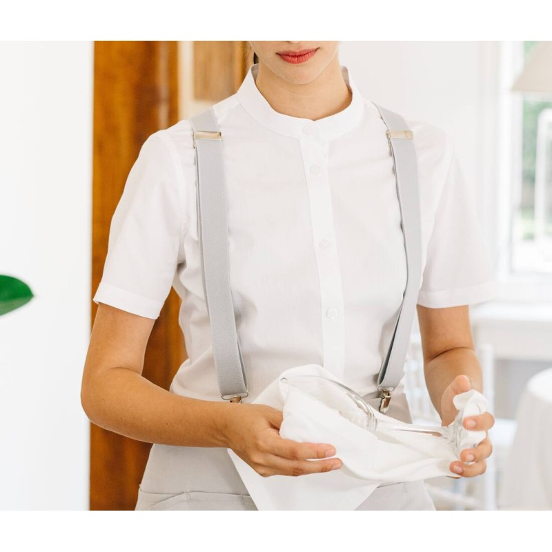 Bretelles élastiquées de 30mm de large. Trois pinces d’ajustement métalliques. Empiècement en cuir dans le dos.