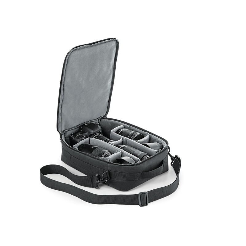 Polyester 300D | Étiquette détachable | Composition: mousse protectrice | Compartiment principal à fermeture éclair | Système de cloison intérieure flexible et rembourrée | Poche arrière zippée | Doublure polyester brossée | Peut être utilisé indépendamment ou en tant qu'insert de sachet | Compact et léger | Bandoulière ajustable et amovible | Poignée | Livraison sans contenu/décoration | Capacité : 7,5 litres