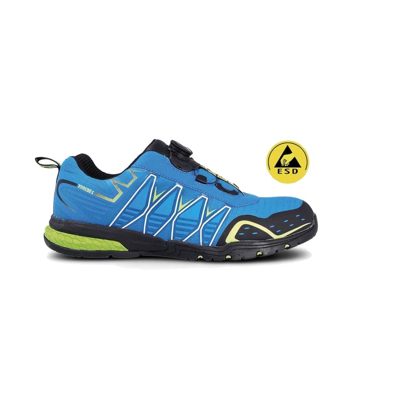 Chaussures basses de sécurité avec embout COMPACT® non métallique, résistant aux impacts >200 joules. Approuvé spécification UNE EN ISO 20345. Certification S3 ESD SRC. Semelle en caoutchouc double densité EVA-Nitrile "SRC", antidérapante, anti-perforation COMPACT® non métallique.