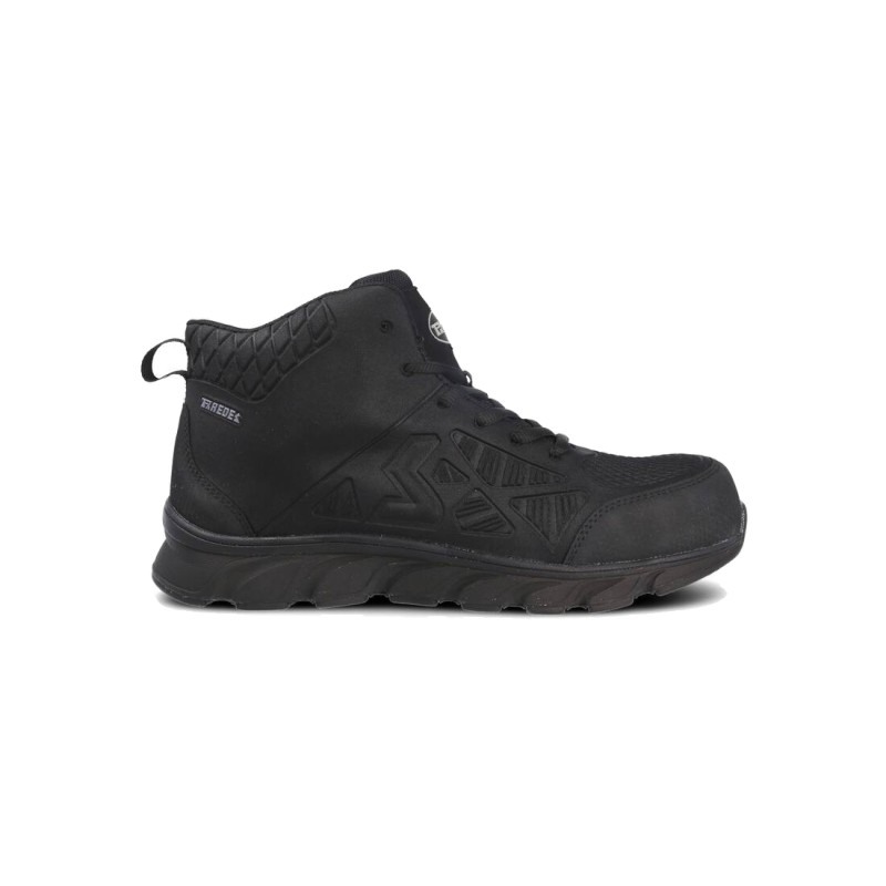Chaussures hautes de sécurité avec embout COMPACT® non métallique, résistant aux impacts >200 joules. Semelle en EVA et caoutchouc nitrile antidérapante SRC. Semelle COMPACT® non métallique, résistante à la perforation >1000N.