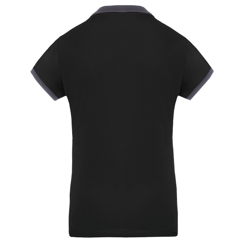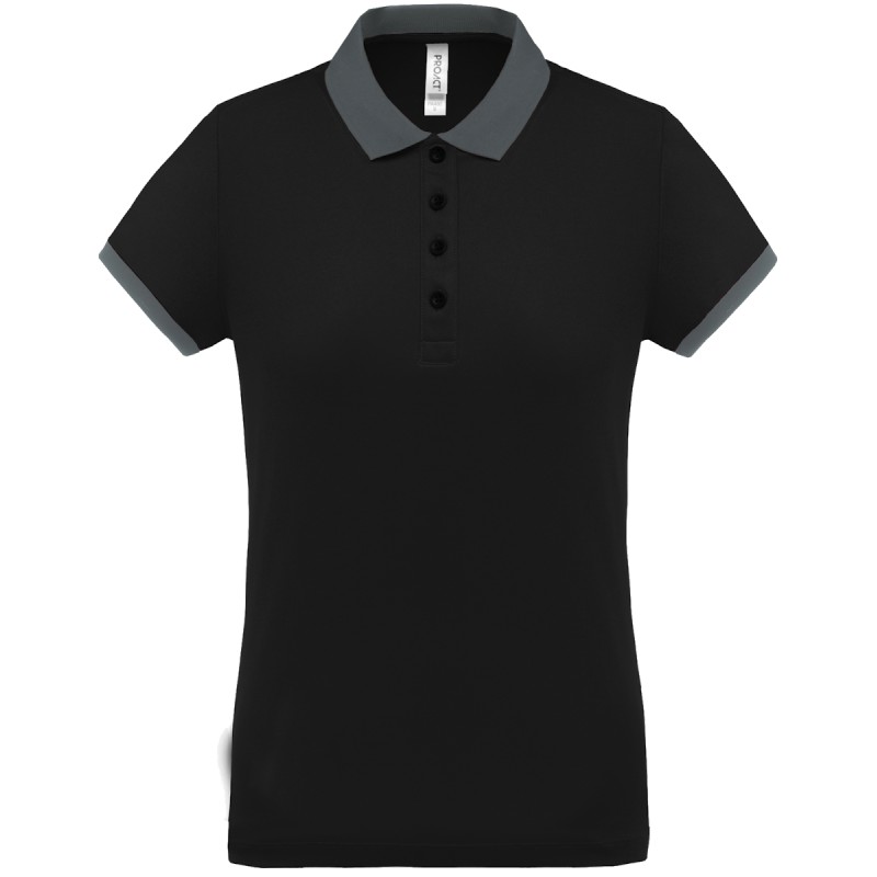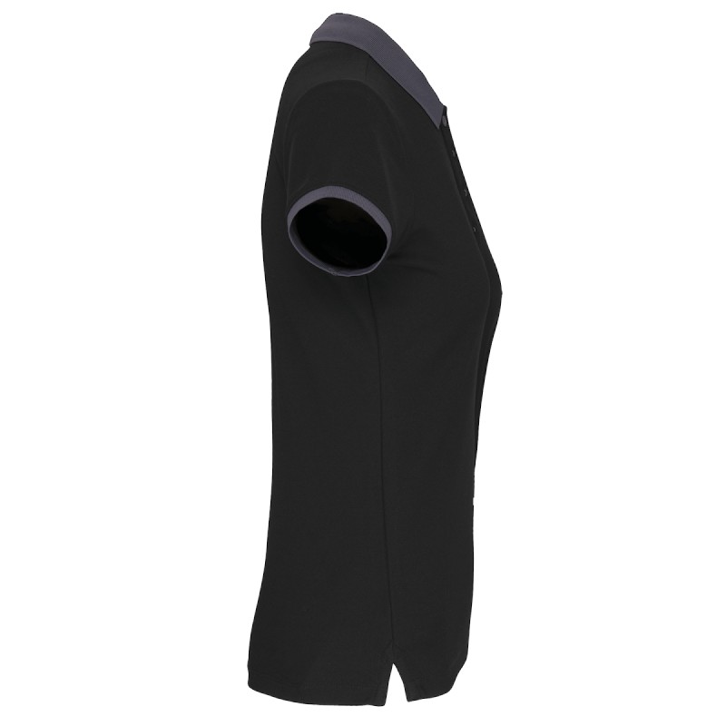 100% polyester. Maille piquée Cool Plus®. Coupe cintrée et look moderne. Col et bas de manche en bord-côte contrasté. Patte de boutonnage 4 boutons (contrastés ou unis selon modèle). Fentes latérales. Certifié STANDARD 100 by OEKO-TEX® N° CQ 1007/7, IFTH.