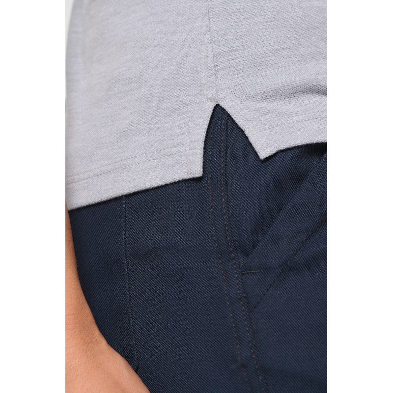 65% polyester / 35% coton. Coton peigné maille piquée. Lavable à 60°C. Traitement antiboulochage. Patte 3 boutons avec bande intérieure contrastée. Col en bord-côte avec bande de propreté. Passepoil contrasté intérieur col et épaules. Finitions bord-côte avec liseré contrasté au bas de manches. Fentes latérales avec bande chevron contrastée pour plus de confort. Finition double aiguille au bas de vêtement. Idéal pour une utilisation quotidienne. Certifié STANDARD 100 by OEKO-TEX®N° CQ1007/7, IFTH.