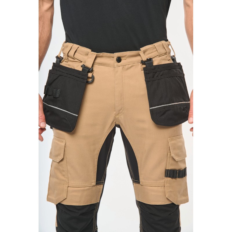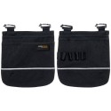 Cordura®. Vendu par paires. 2 poches outils en Cordura® avec piping silver, développées pour s'accrocher sur les passants d'un pantalon. Les poches s'accrochent avec un système de clips. L'espace entre les 2 clips est de 13 cm. Les 2 poches ont plusieurs compartiments. Une des poches a une bride pour accrocher les outils.