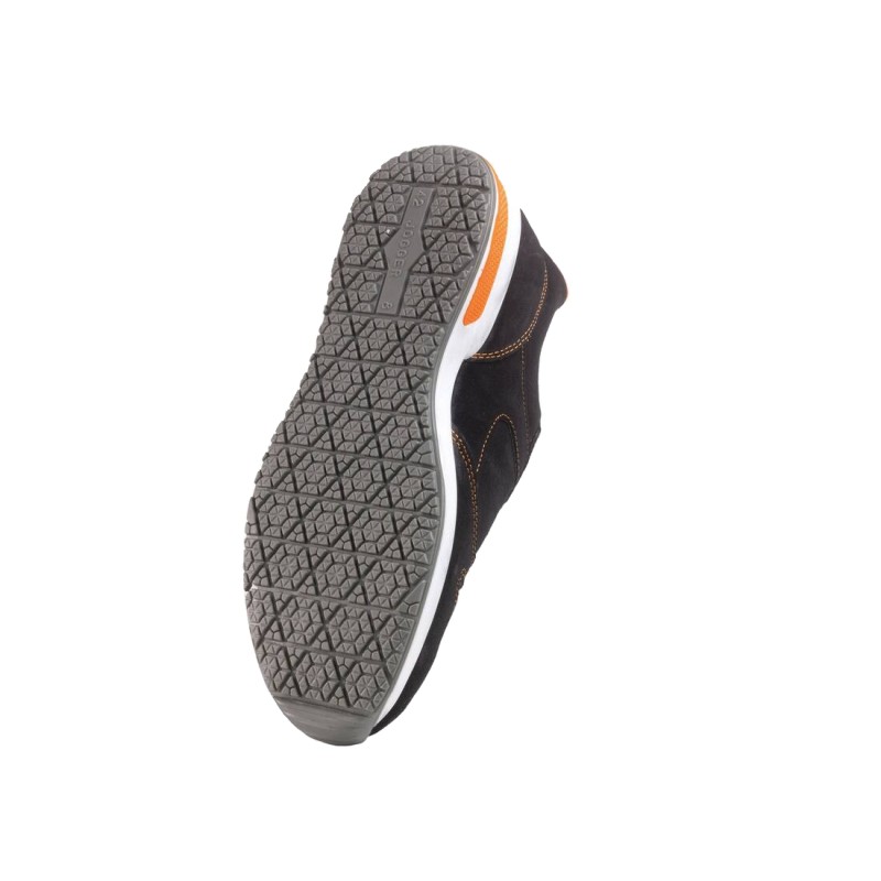 Chaussures basses avec embout de sécurité en acier. Semelle intermédiaire : Kevlar non métallique anti-perforations. Semelle intérieure : anatomique, antistatique et amovible. Semelle : PU/RPU avec une application PU sur le talon, double densité, antistatique, résistante aux dérapages, résistante à l’huile et aux hydrocarbures.