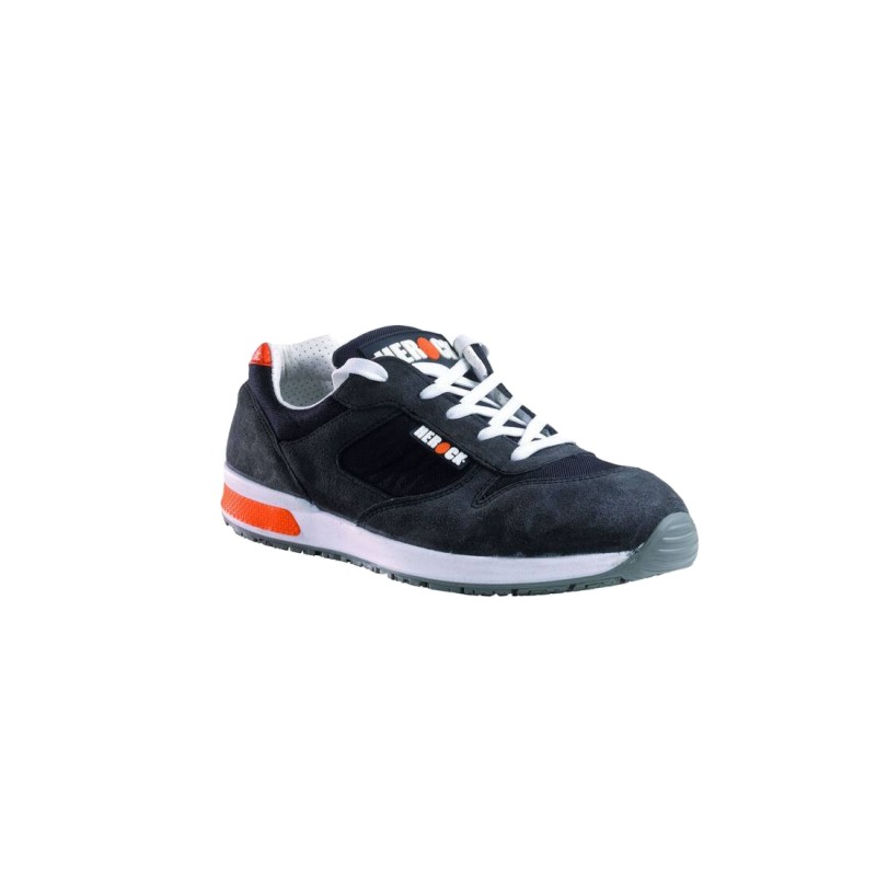 Chaussures basses avec embout de sécurité en acier. Semelle intermédiaire : Kevlar non métallique anti-perforation. Semelle intérieure : anatomique, antistatique et amovible. Semelle : PU/RPU avec une application PU sur le talon, double densité, antistatique, résistante aux dérapages, résistante à l’huile et aux hydrocarbures avec une absorption énergétique dans le talon.